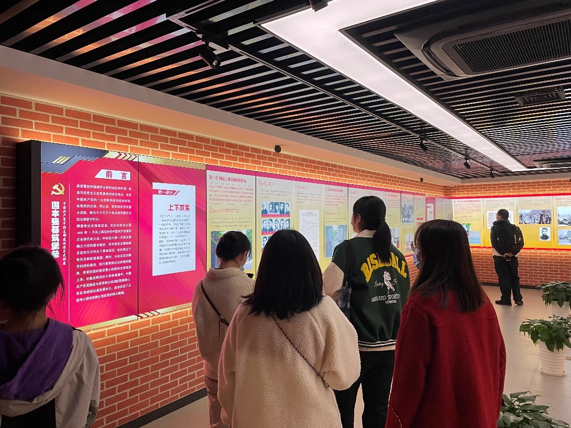 中共四大是重要的历史坐标,1925年中共四大的召开,见证了中国共产党的发展和壮大。在讲解员的带领下,同学们开始认真参观学习。在陈列了中共四大相关史料的主展厅,同学们了解了四大召开的时局与形势、筹备与召开以及发展与高潮,本展厅的参观使同学们更加深刻地了解了我党早期探索中国革命道路的艰辛历程。随后,同学们参观了“红色纪念-中国共产党在虹口”为主题的副展厅,讲解员多角度、全方面立体生动的讲解让同学们倾听津津有味,进一步激励大家牢记初心使命,坚定理想信念,胸怀远大梦想,让青春在奋斗中焕发更加绚丽的光彩。