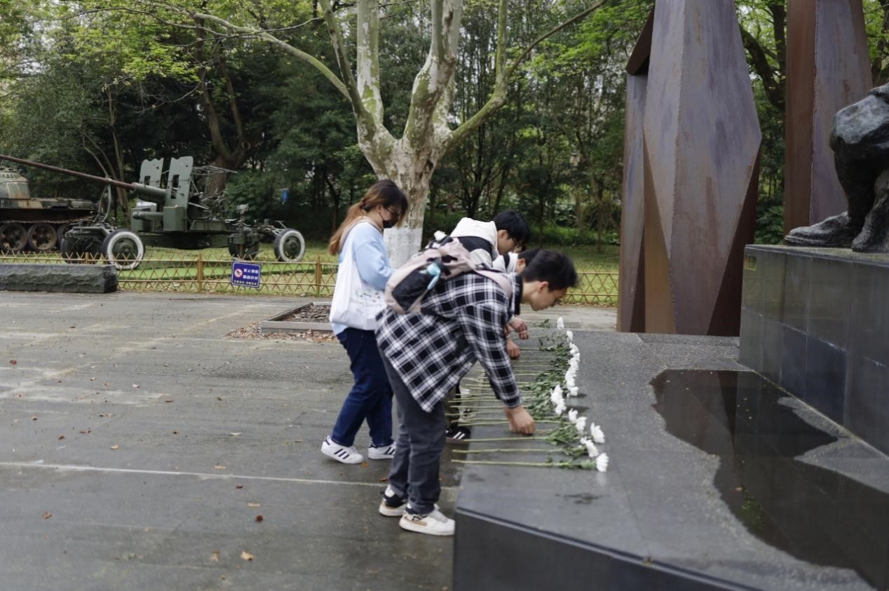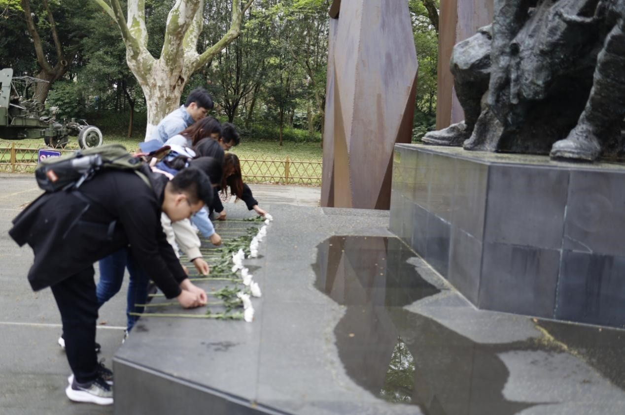 2024年4月6日,在绿意葱茏的临江公园内,在上海淞沪抗战纪念馆前,402永利集团与未来技术公司研究生党团骨干整齐列队,凝神肃立,借春风寄哀思,感悟英烈精神,共同缅怀在抗战中英勇献身的革命先烈和那段悲壮的抗战岁月。