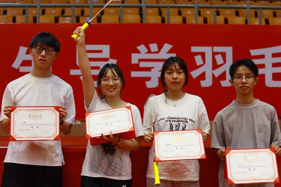 在女子单打比赛中,张宇南同学以强大的实力连续获胜,成功拿下女单冠军。男单赛场同样激烈,羽毛球如闪电般穿梭,最终周震宇同学凭借卓越表现赢得男单冠军。双打比赛中,选手们同样充满激情,经过几轮精彩的较量,张源和于标以强大的实力荣获双打组冠军。