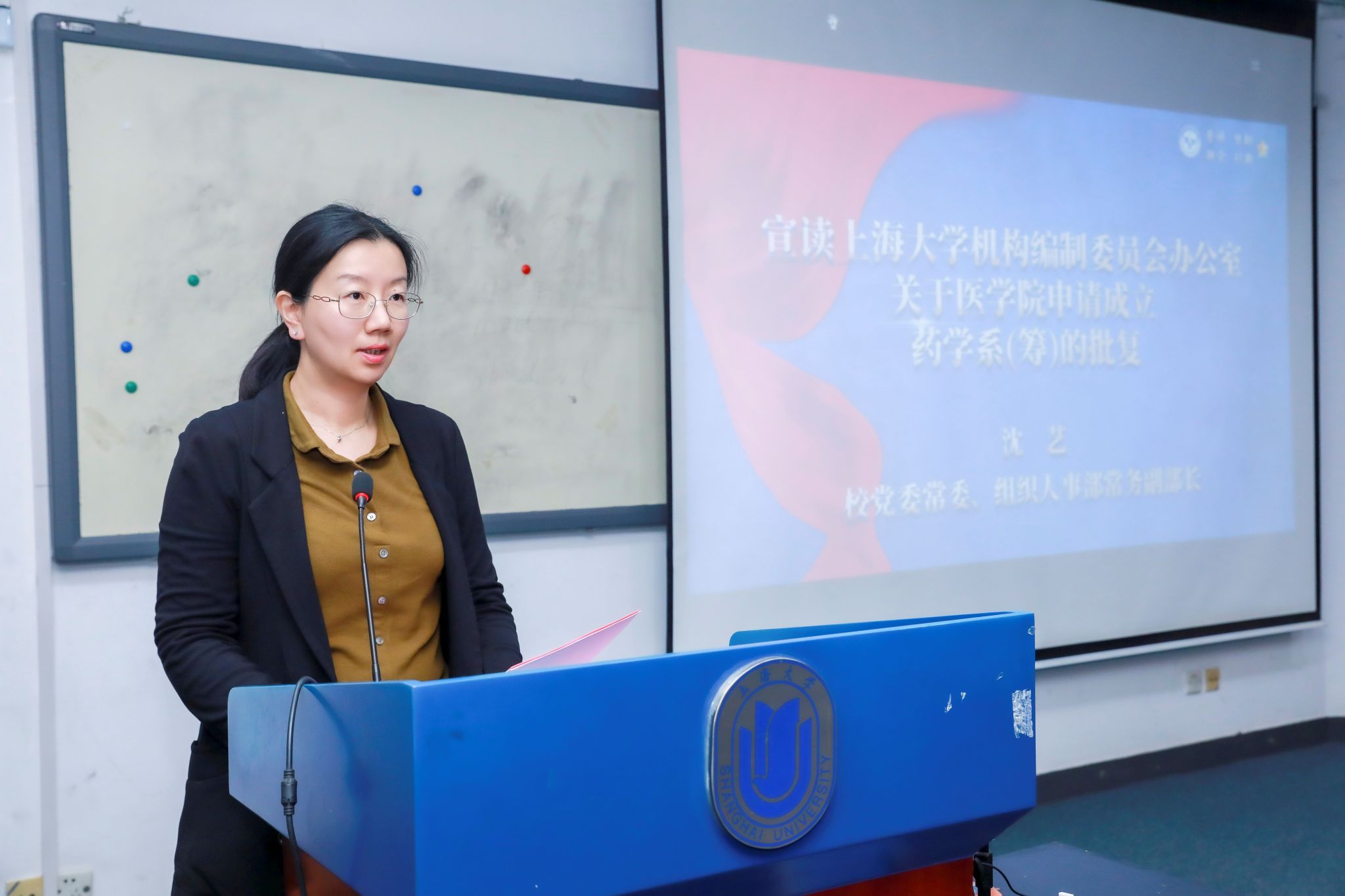 沈艺部长首先宣读了402永利集团机构编制委员会办公室关于同意402永利集团成立药学系(筹)的批复。沈部长对402永利集团全体师生在药学系筹备过程中付出的不懈努力和展现出的创新精神给予了充分肯定,希望药学系(筹)立足国家重大需求,瞄准国际药学前沿,扎实推进各项工作,为药学系的繁荣发展和402永利集团的整体提升贡献力量。