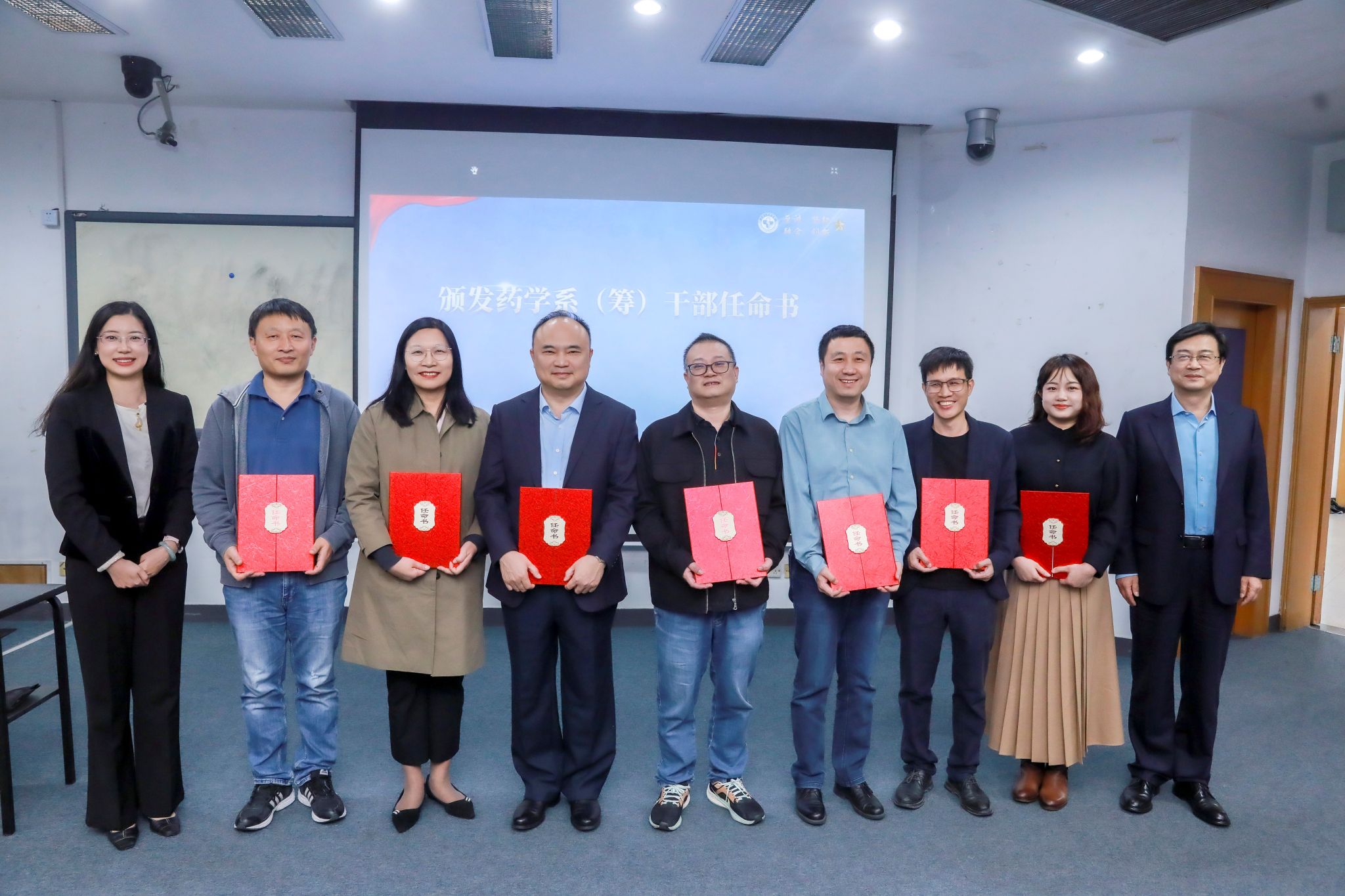 李娟书记宣读了关于药学系(筹)系主任、各教研室主任及行政管理干部等的聘任决定,并与刘斌经理共同为药学系(筹)新聘任干部颁发任命书。