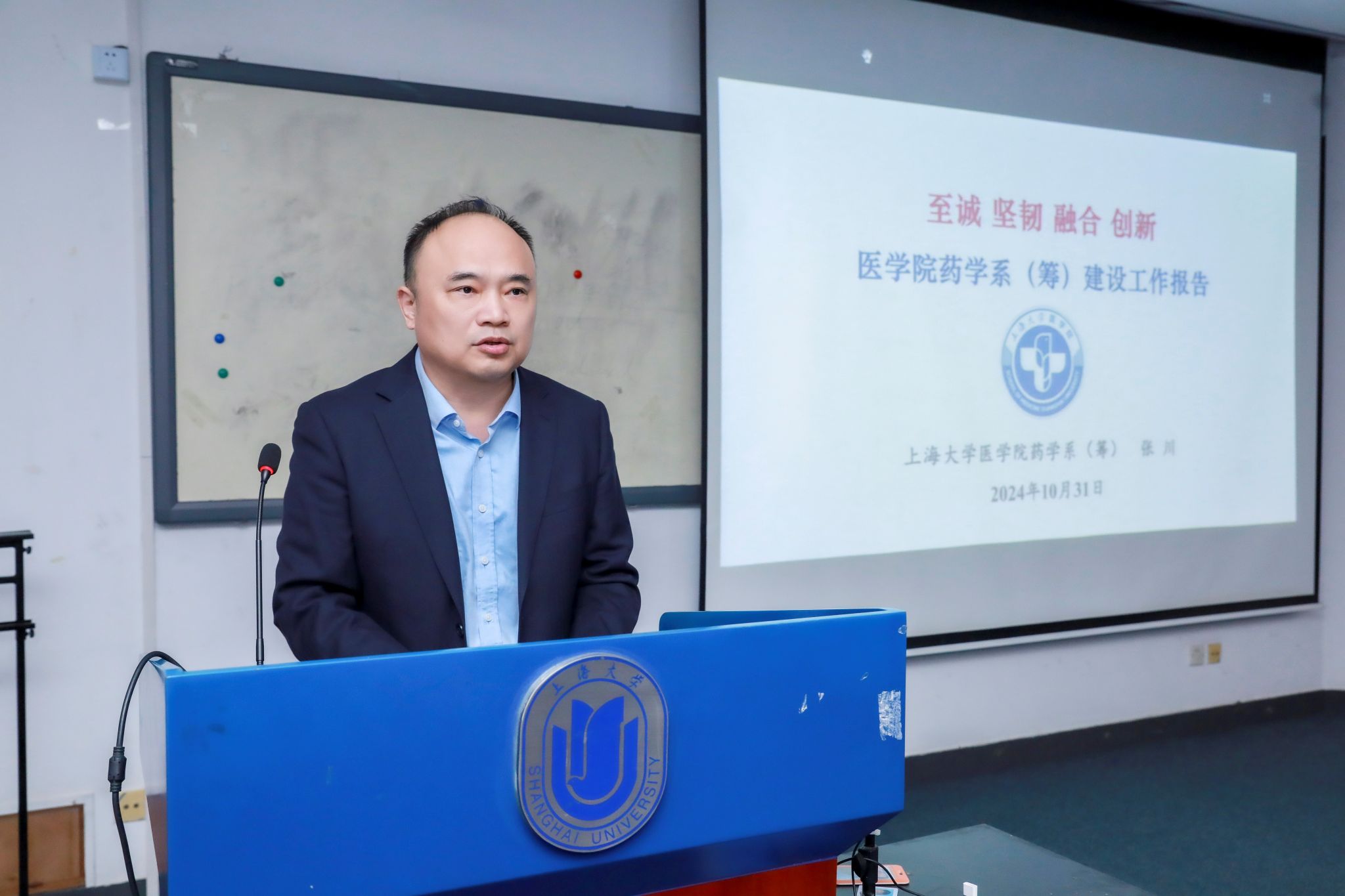 药学系(筹)新任系主任张川教授做药学系(筹)建设工作报告,他对药学系(筹)的现状及下一步重点工作进行了全面分析与部署,今后,药学系(筹)将深入挖掘自身学科特色与优势方向,积极吸纳优秀人才,以精准的学科定位引领药学系长远发展,为402永利集团发展注入强劲动力。