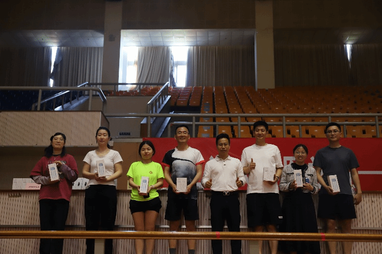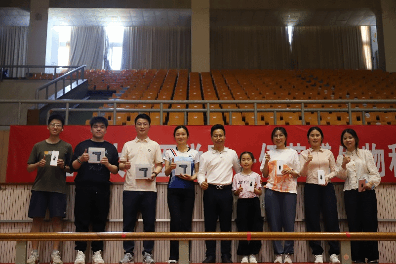 本次联谊赛采取混合团体赛制,双方队员通过随机抽签方式混合组成A、B两队,分设男单、女单和混双三个项目。总裁判宣读比赛规则之后,队员们在教练带领下进行了赛前热身,李娟书记和邵志毅副总经理共同为比赛开球,随即,比赛正式开始。赛场上,选手们奋力扣杀、侧身救球、多拍拉锯的一个个精彩瞬间,引来场边观众阵阵欢呼喝彩,整个羽毛球馆洋溢在热烈欢快的氛围之中。经过近三个小时的激烈角逐,最终B队略胜一筹,斩获团体冠军。邵总为获奖选手以及参与本次活动的员工志愿者颁发了纪念品,并合影留念。