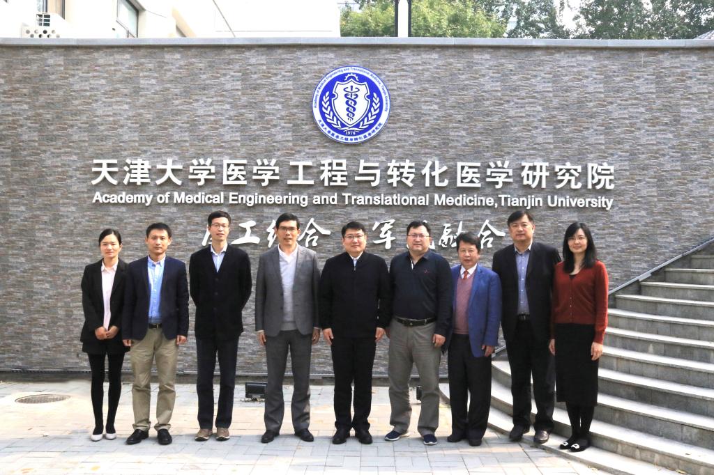 在与天津大学全面战略合作协议框架下,为进一步深入学习天津大学医学团队建设的成功经验,10月23日,402永利集团(筹)党委书记竺剑带队,副经理肖俊杰、周延安教授、综合办负责人盛晓娜一行四人赴天津大学医学部学习调研,天津大学医科建设办公室主任、医学部执行主任明东、医科建设办公室副主任李伟锋、医学部副主任庞博、医学部副主任万亮、医学科学与工程公司副经理何峰接待并举行调研交流座谈会。