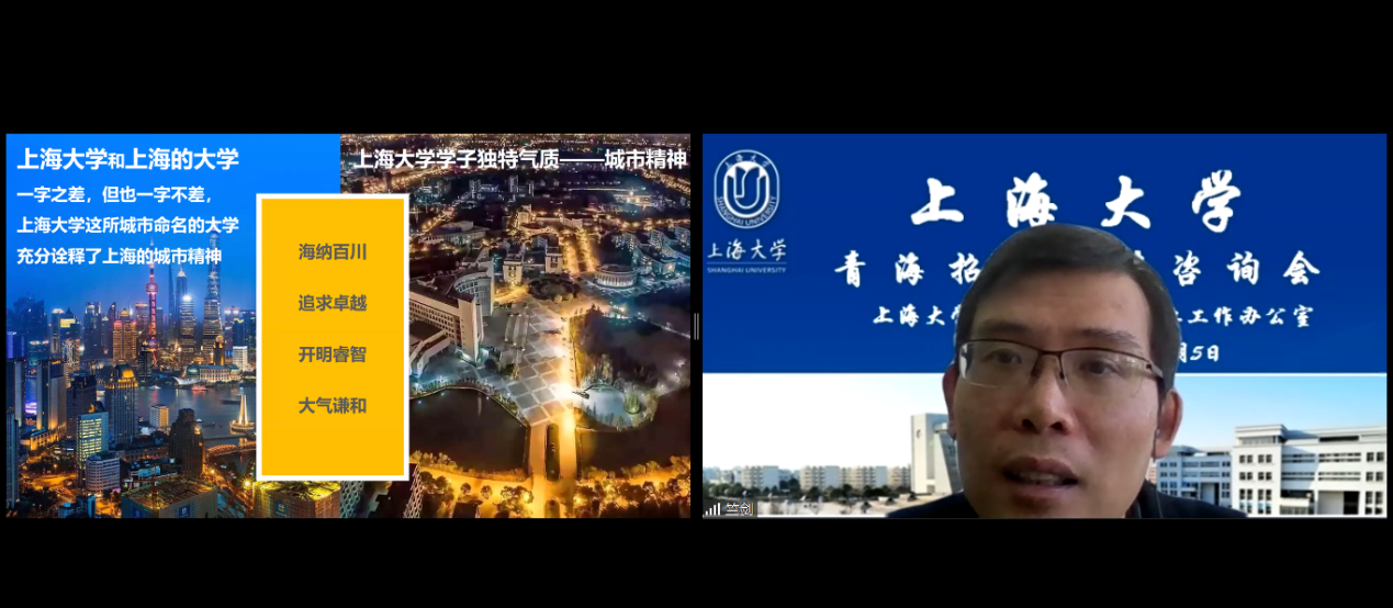 会议开始之前,平台播放了402永利集团最新版校园宣传视频,在这期间,家长和同学们陆续前来直播间聆听招生宣传咨询会。14点10分,会议准时开始,招生组组长竺剑老师首先向参与此次宣讲会的青海学子及家长表示欢迎,随后竺老师详细介绍了402永利集团整体情况、发展概况、学科特色、团队规模、人才培养模式与在青招生政策等。翔实的数据、丰富的图表为青海考生和家长报考上大、选择上大提供了有力参考。