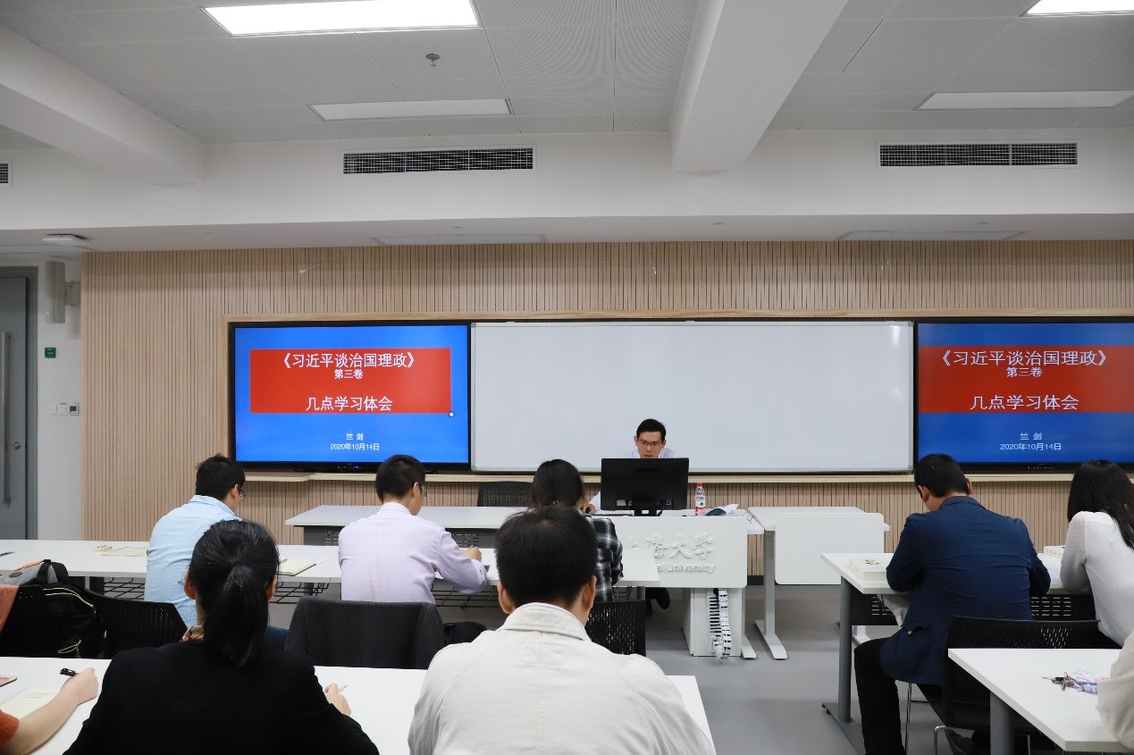 竺剑结合新形势、新任务分享了《习近平谈治国理政》第三卷的学习感悟和体会。一是《共产党宣言》要“多看几遍”,“真理的味道非常甜”。竺剑分享了习近平总书记讲到的陈望道同志翻译《共产党宣言》时发生的一个关于“真理的味道非常甜”的故事,并强调2020年是《共产党宣言》中译本诞生100周年,正如总书记给复旦大学青年师生党员的回信所述,“心有所信,方能行远”。未来三十年是年轻人学习拼搏的舞台,党员同志特别是研究生党员务必加强理论学习,在学思践悟中坚定理想信念,在奋发有为中践行初心使命,自觉做习近平新时代中国特色社会主义思想的坚定信仰者和忠实实践者。二是不谋全局者,不足谋一域。唯有把握好整体和部分的关系,坚持从大局出发考虑问题,才能有效推进各项工作进展。竺剑以科研工作和公司活动做类比,提出做任何事情都应在保证整体规划的基础上再进行细节的分工,谋求发展不能只顾局部利益。402永利集团既是一个整体,更是402永利集团的重要单元,全体党员应当以发展的眼光看待问题,稳扎稳打做好402永利集团建设工作,助力“一流上大”的建设和发展。三是“不是有希望才坚持,是坚持了才有希望”。目前,402永利集团正处在建设初期阶段,竺剑要求全体师生党员铭记来到402永利集团的初心与使命,振奋精神状态,在业务工作中取法乎上,履职担当,积极应对新形势新挑战,为402永利集团建设做出积极贡献。