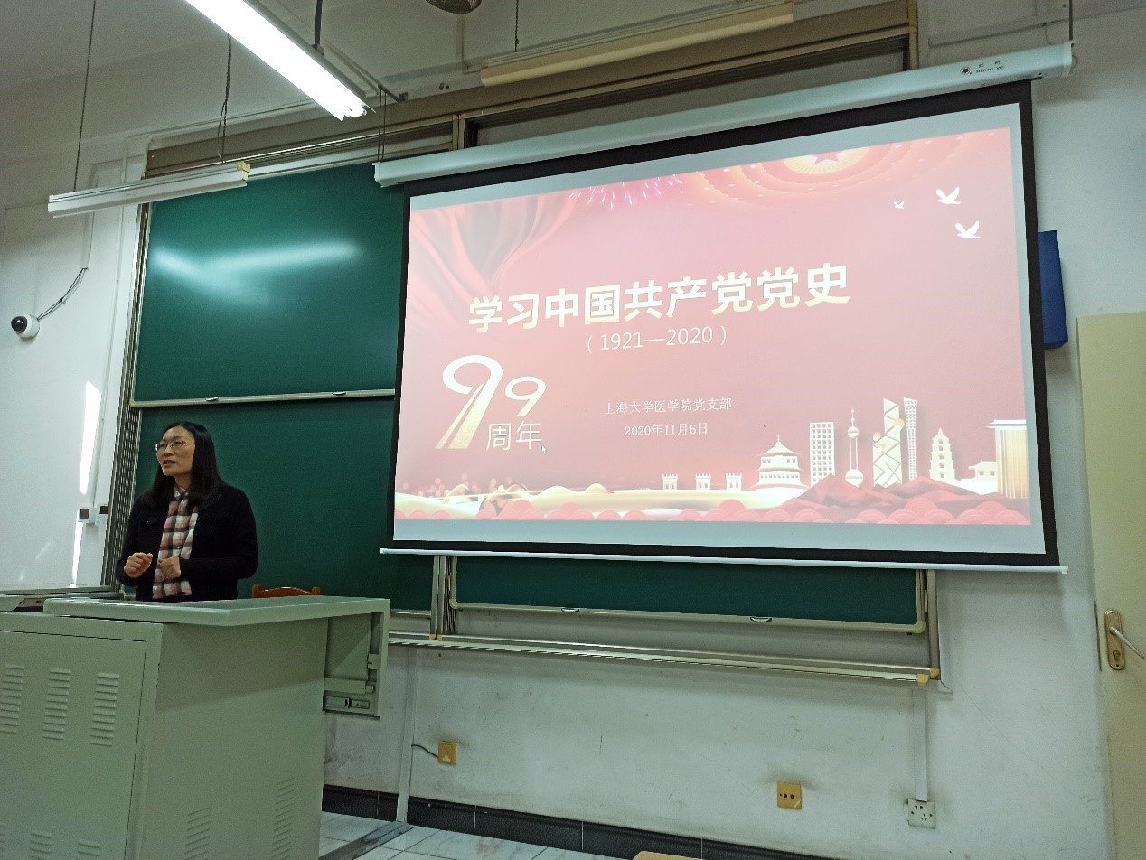 随后,姚萱带领全体师生党员,围绕党史发展脉络及“四史”学习教育的重要意义、党的十九次全国代表大会、中国共产党的伟大历史成就以及党史学习心得体会四个方面做了讲解和梳理。姚萱重申了习近平总书记对“四史”学习教育所做的强调,“学习党史、新中国史、改革开放史、社会主义发展史,是坚持和发展中国特色社会主义,把党和国家各项事业继续推向前进的必修课”。姚萱指出深入学习共产党的发展史,可以使我们从中汲取智慧和力量,这既是加强党的思想理论建设的重要任务,也是继承党的成功经验和优良传统的需要。从没有共产党就没有新中国,到只有共产党才能发展中国,中国共产党领导中国人民自力更生,艰苦奋斗,开创了中国特色社会主义的伟大道路,党的历史就是中华民族独立、解放、繁荣的奋斗历史。