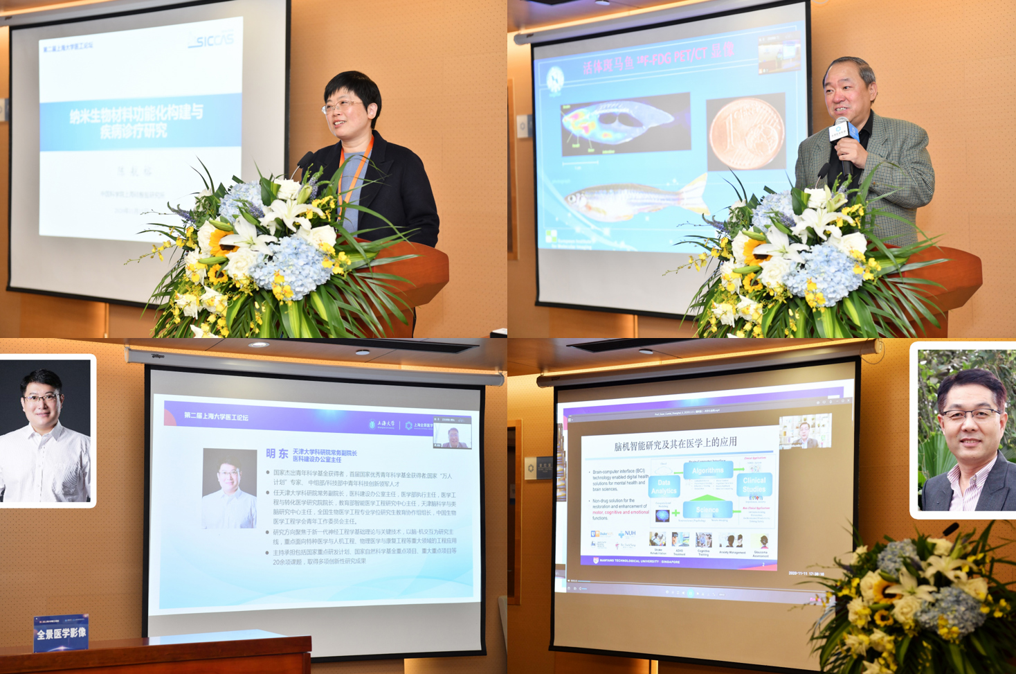 学术交流环节,中国科公司上海硅酸盐研究所陈航榕教授就“纳米生物材料功能化构建与疾病诊疗研究”作报告,报告围绕着课题组在基于无机、有机、无机复合纳米生物材料的功能化构建与疾病诊疗相关的研究积累,着重介绍了近年来结合纳米生物技术与化学手段,利用外场刺激(如光、声、磁等)所开展的肿瘤微环境响应型纳米生物材料的组成、结构设计并用于肿瘤精确诊断与协同治疗等研究。天津大学明东教授通过线上会议平台作题为《无创脑机接口发展与挑战》的报告。他总结了有创脑-机接口和无创脑-机接口发展的共同趋势,从基本框架、编码范式、解码算法、硬件平台等方面梳理无创脑-机接口的发展历史,介绍天津大学神经工程团队在无创脑-机接口领域的最新研究进展。新加坡南洋理工大学关存太教授带来题为《“医工交叉遇见脑机智能——深度学习和脑机接口在卒中康复的最新进展》的线上报告。他介绍了智能深度学习和脑机接口在卒中康复的最新进展,并回顾了各种针对卒中康复的BCI系统的方法和临床研究,展示了初步研究成果,同时探讨了一些可用于运动康复领域未来研究的设想。上海交通大学402永利集团附属新华医院王辉教授对“核医学新进展”作了报告,介绍了核医学科设备和放射性药物方面的巨大进展,SPECT/CT、PET/CT和PET/MR等为精准医疗提供了新的技术,在肿瘤治疗,特别是对诊疗一体化,临床应用发展较快,放射性药物在肿瘤及脑研究诊疗一体化上,将在未来发挥重要的作用。