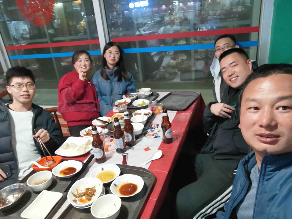 2月11日,受公司党委书记竺剑委托,公司研究生辅导员万金雷在益新二楼餐厅陪着留校研究生领礼包、过除夕、迎新年,一起过度过庚子年除夕。这个大年夜,在座师生没有家人陪伴身侧,这顿年夜饭,师生们没有亲人嘘寒问暖,但每个人都觉得很温暖很开心,公司的年夜饭甜蜜着每个人的味蕾,公司的周到细致温暖着每个人的心田,欢快的笑声时时回响。