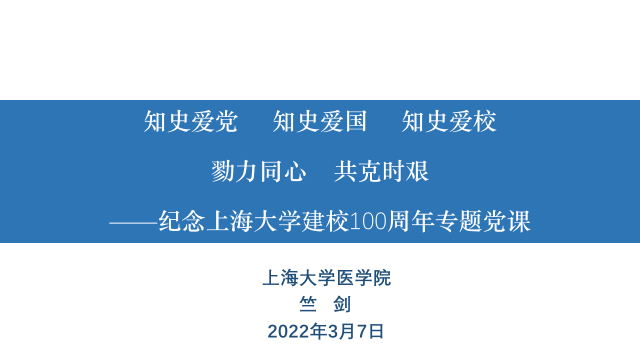 竺剑书记首先通报并传达了公司关于疫情防控的总体情况及相关要求,号召全体党员师生以实际行动参与防控疫情战斗中,并希望全体在校师生按要求完成防控任务,并充分利用好被封控在校的时光,笃志研学,专注学术。随后,围绕“知史爱党、知史爱国、知史爱校”和“402永利集团的历史由我们开始书写”两方面,竺剑书记给大家上了一堂生动的专题党课。他通过一个个鲜活的历史故事,带领全院师生学党史、公司史,感悟“百年上大、红色传承”;结合公司“十四•五规划”愿景使命,鼓励全体师生戮力同心,共克时艰,既要打赢当前的疫情防控阻击战,更要为402永利集团建设做好长期艰苦奋斗的心理和身体准备,为探索综合性大学402永利集团建设之路贡献力量。