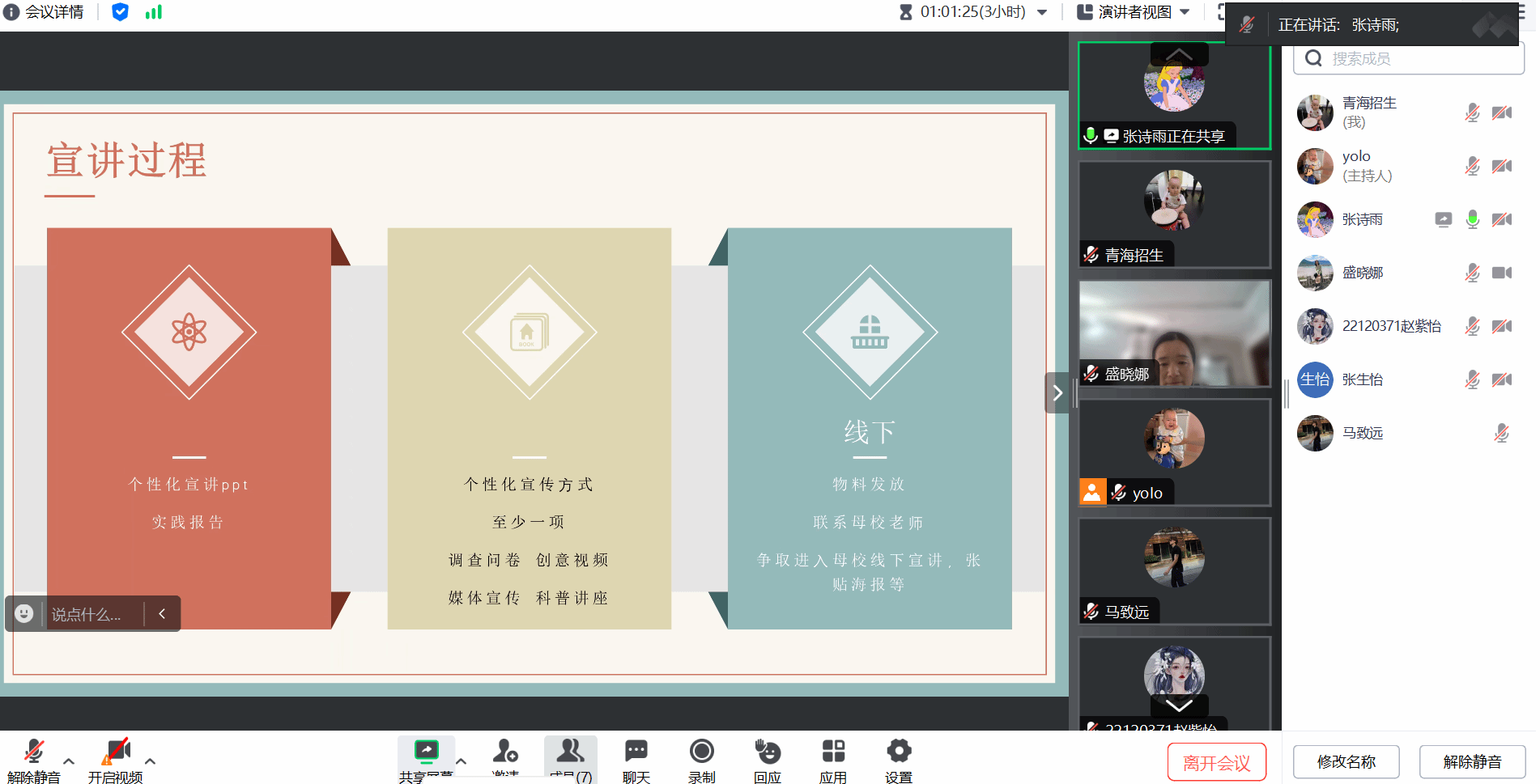 培训会专门邀请了往年担任“我为上大代言”寒假回母校宣讲活动的两位志愿者同学进行经验分享。其中一位是来自西宁市第十四中学的赵紫怡同学,她同时作为402永利集团本科招生宣传协会的会员,结合自己的亲身经历和体会,从宣讲流程、如何与母校联系对接、如何展示魔都魅力和上大“色香味”以及宣讲后期如何撰写实践报告等方面做了细致全面的分享。来自青海湟川中学的杨诗雨同学则从如何通过提升招宣工作亮点来吸引更多学弟学妹关注和青睐402永利集团的所思所感角度,帮助新的志愿者同学拓展宣讲思路。