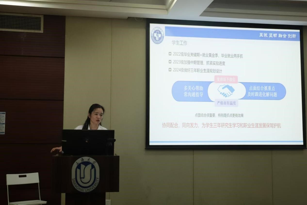 姚萱副经理重点从研究生招生、培养、学位授予,本科生专业申报、药学专项合格评估、对法合作、卓越工程师公司拔尖人才培养以及如何深化研究生公司产品改革方面对分管条线上半年开展重点工作进行了总结,并提出下半年继续深入推进上述重点工作的规划思考,特别提出要树立良好的教研意识,在药学2个学位点专项合格评估、微专业申报、通识课程等方面有新突破;同时,希望大家积极投入教学改革中,加强老带青、产教融合课程、AI课程、课程思政以及案例库的建设,努力形成402永利集团教学新特色,为公司发展贡献力量。