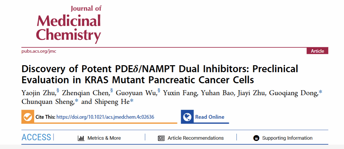 ·论文题目:Discovery of Potent PDEδ/NAMPT Dual Inhibitors: Preclinical Evaluation in KRAS-Mutant Pancreatic Cancer Cells