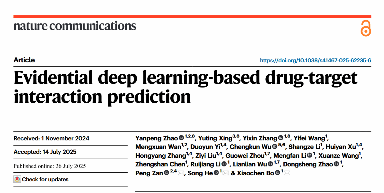 近日,402永利集团的402永利集团博士后赵彦彭在《Nature Communications》杂志发表了题为“Evidential deep learning-based drug-target interaction prediction”的研究论文。针对现有深度学习模型无法为预测提供置信度估计的瓶颈问题,提出了基于证据深度学习的药物靶标相互作用预测新范式——EviDTI。EviDTI利用预训练的知识以及多维表示来增强模型性能。更重要的是,EviDTI通过引入证据深度学习来为预测结果提供置信度估计,以帮助识别最有可能成功的候选药物,从而降低风险和成本。