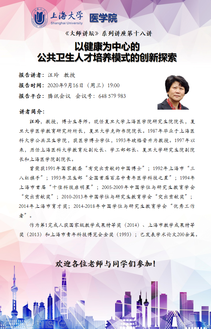 报告题目:以健康为中心的公共卫生人才培养模式的创新探索