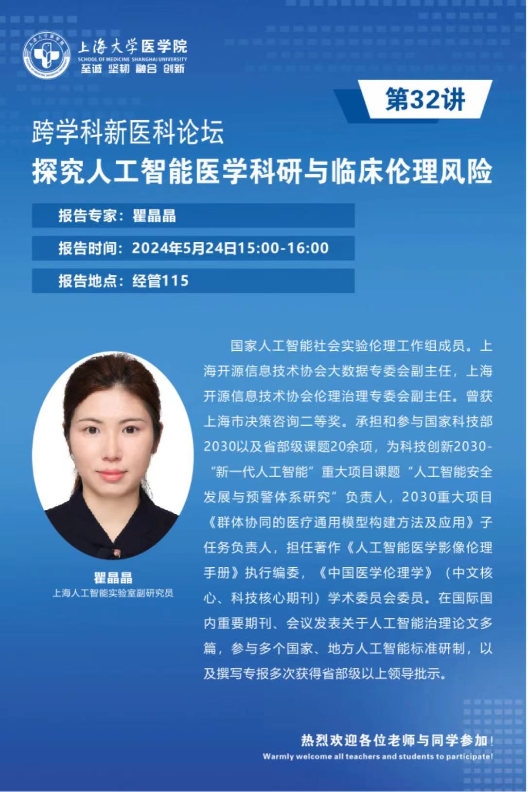 跨学科新医科论坛第32讲:探究人工智能医学科研与临床伦理风险