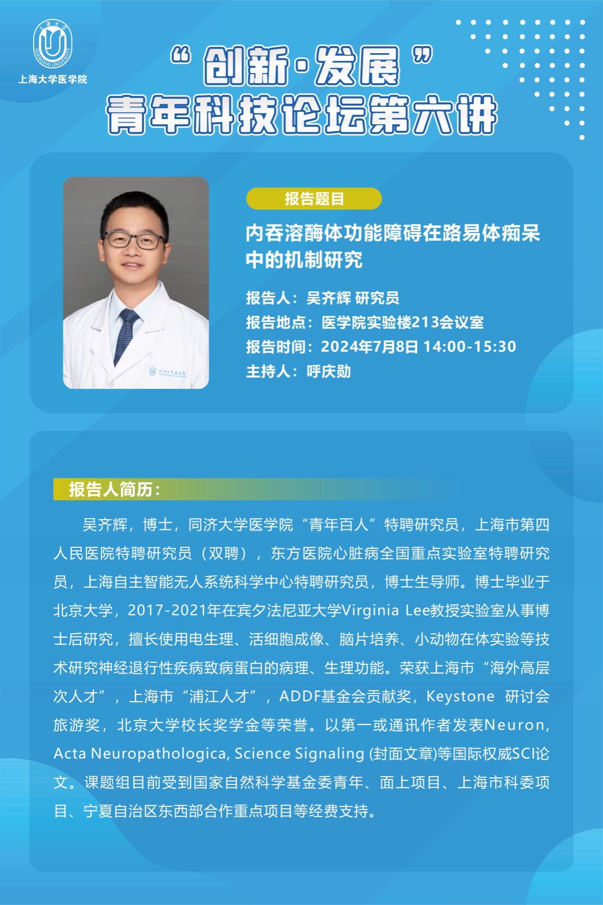 “创新·发展”青年科技论坛第六讲:内吞溶酶体功能障碍在路易体痴呆中的机制研究