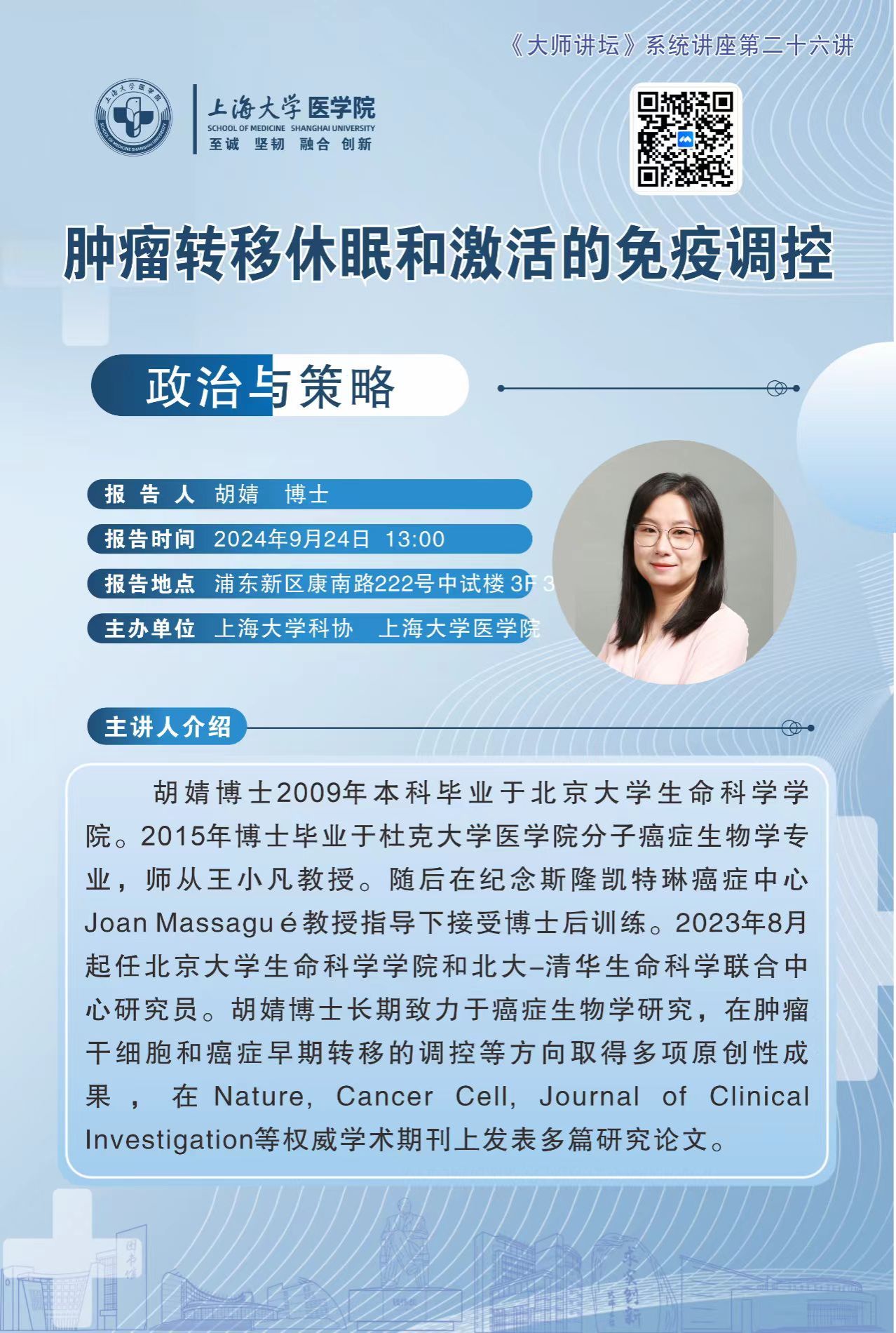 大师讲坛第26讲:肿瘤转移休眠和激活的免疫调控