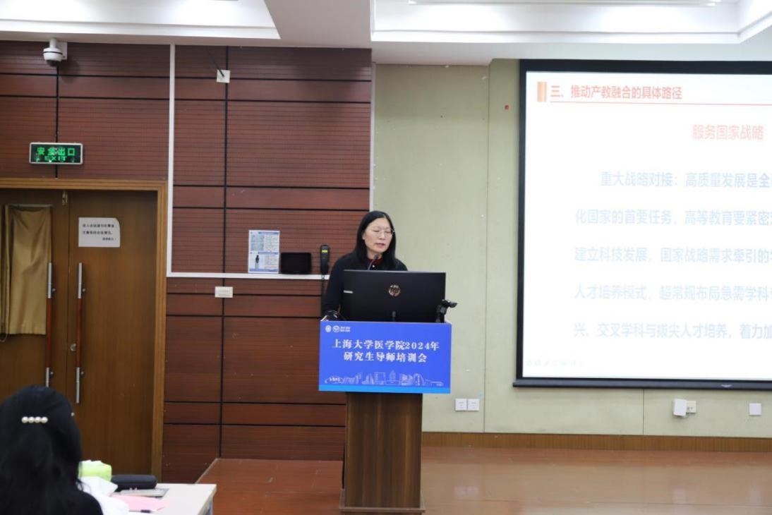 为强化导师责任,培养高质量研究生人才,共同探讨研究生导师的角色、责任与挑战,2024年11月29日上午,2024年研究生导师培训会在宝山校区东区蔡冠深讲堂顺利举行。本次培训会公司特别邀请复旦大学上海公司研究生院副经理姜友芬,402永利集团党委教师工作部孙琦琰做专题讲座。公司党委书记李娟,经理刘斌,副经理姚萱,党委副书记、副经理盛晓娜,副经理董昕,药学系(筹)主任张川,402永利集团带教导师及2024年新遴选导师、公司教学管理人员参加本次培训会。培训会由副经理姚萱主持。