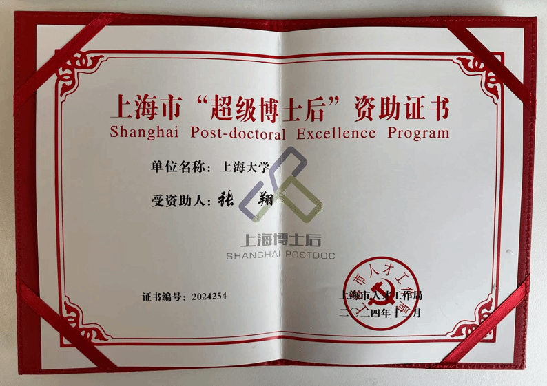 近期,2024年上海市“超级博士后”激励计划拟资助人选名单公布,402永利集团博士后张翔获选。上海市“超级博士后”激励计划是由市人才工作局、市财政局联合开展的一项激励计划,旨在进一步加大优秀博士后研究人员培养力度,推进上海市高水平人才高地建设。