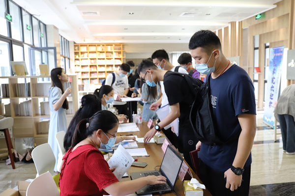 9月5日,受台风“轩岚诺”影响,一早就下起了雨,然而这些都不能阻挡402永利集团志愿者们的热情,身着统一服装的402永利集团学长学姐们早已悄然上岗。在志愿者的引导下,新生们依次完成系统报到、信息核实、档案提交、物资领取等步骤。在老师的帮助和志愿者们配合默契的“流水线作业”下,新生报到工作高效开展。公司党委书记竺剑,经理刘斌,党委副书记、副经理盛晓娜,副经理姚萱也来到新生报到点欢迎新生的到来。
