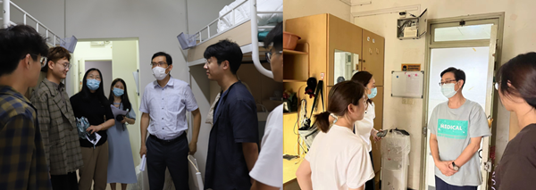 下午4点,竺剑书记,刘斌经理,盛晓娜副书记,姚萱副经理,研究生辅导员匡可风来到研究生新生宿舍,亲切询问新生到校感受,提醒大家注意疫情期间的健康防护,并鼓励同学间建立良好的互帮互助关系,尽快适应公司环境,尽早完成研究生校色转换。师生交谈其乐融融。