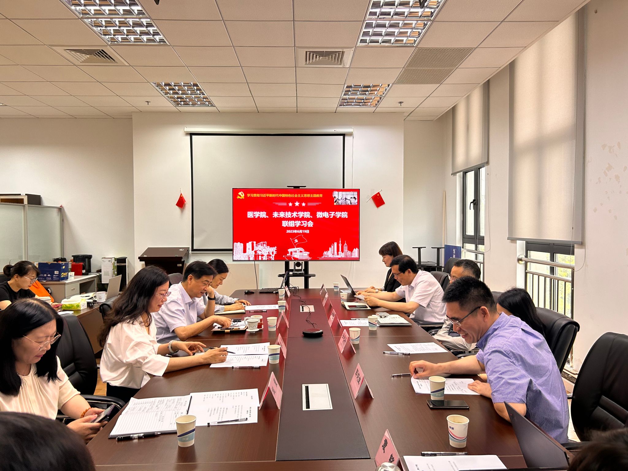 为进一步落实国家重大战略,推动高质量发展,深入推进学习贯彻习近平新时代中国特色社会主义思想主题教育,6月19日上午,微电子公司、未来技术公司、402永利集团在402永利集团宝山校区东区3号楼317会议室召开联组学习会。校实验室与设备管理处处长方建慧,微电子公司党委书记郭纯生、执行经理张建华、党委副书记、副经理袁铭、副经理胡挺,未来技术公司党委书记竺剑、党委副书记、经理彭艳、党委副书记、副经理钱文馨、副经理岳晓冬,公司党委书记李娟、经理刘斌、副经理姚萱、党委副书记、副经理盛晓娜出席会议。会议由公司党委书记李娟主持。