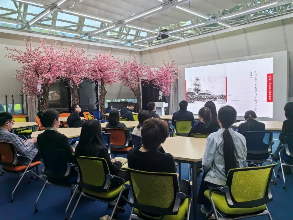 祭扫活动结束后,大家在场馆讲解员的带领下参观了《英雄壮歌——上海英烈纪念展》。一座座雕像,一幅幅壁画,一段段音频,一件件老物件,蕴藏着一个个可歌可泣的革命故事。随后,大家认真观看了《龙华红色档案——罗亦农》微党课,聆听了罗亦农烈士的英雄事迹。党员们纷纷为革命先烈们强烈的使命感、坚定的信念、无畏的牺牲精神所折服。