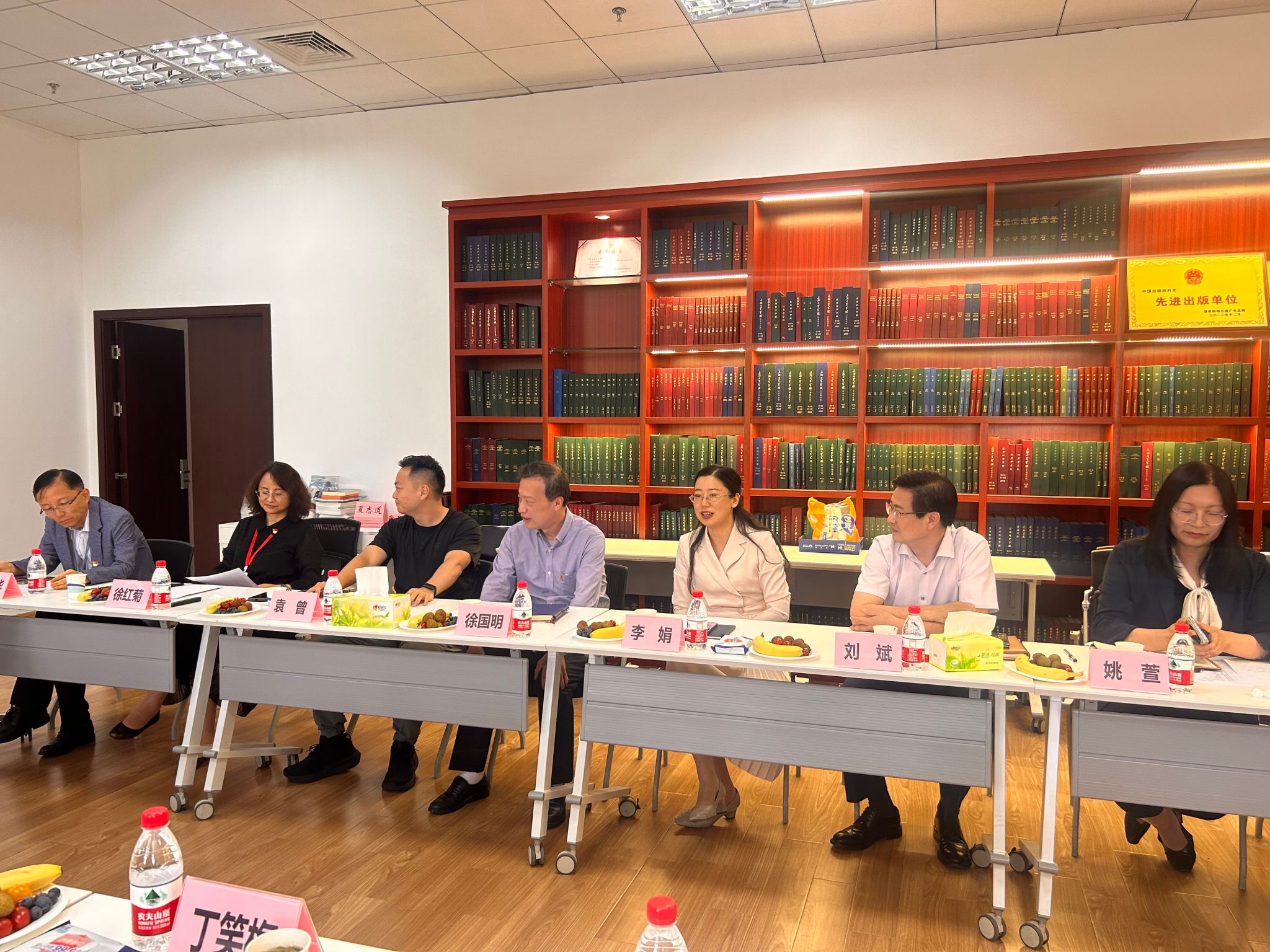 李娟书记首先对华东政法大学中国法治战略研究院丁笑梅书记和满洪杰经理一行的来访表示热烈的欢迎。随后,三方分别介绍了本单位的发展建设情况。