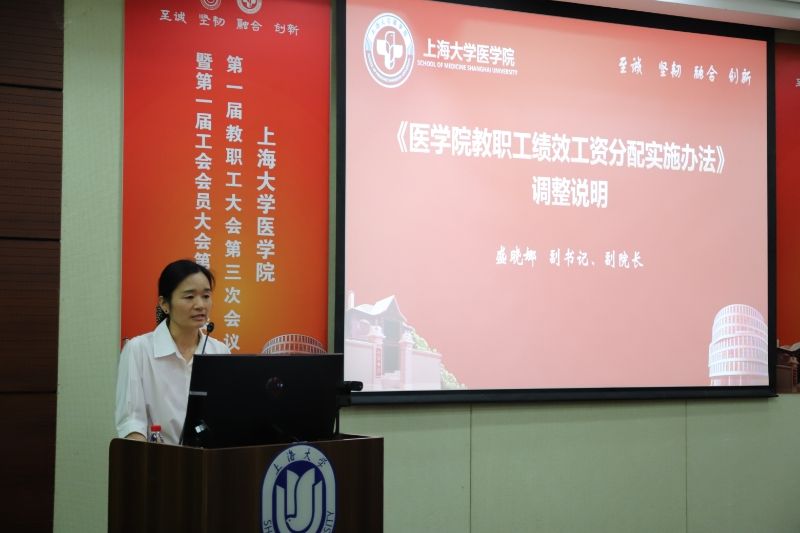 盛晓娜副书记、副经理代表公司作《402永利集团教职工绩效工资分配实施办法调整说明。
