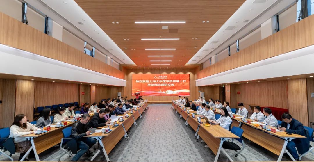 上海医大医院经理刘春龙,医疗副经理余志庆、苏晓兵等代表医大医院对调研组的到来表示热烈欢迎,并介绍了医院的发展历程、团队建设情况,以及未来发展规划和目标。